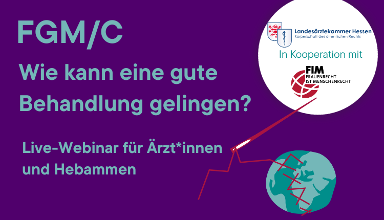 01.2026 | Medizinische Versorgung von Frauen und Mädchen nach weiblicher Genitalbeschneidung (FGM/C) – Wie kann eine gute Behandlung gelingen? Zu diesem Thema bieten wir bereits zum zweiten Mal in Kooperation mit der Landesärztekammer Hessen ein Live-Webinar an, das sich an alle interessierten Ärztinnen und Ärzte sowie an Hebammen richtet. Die Referentinnen verfügen über jahrelange Erfahrung in der Beratung und Behandlung von FGM/C-Betroffenen und werden gemeinsam einen ganzheitlichen Einblick vermitteln. | Mehr