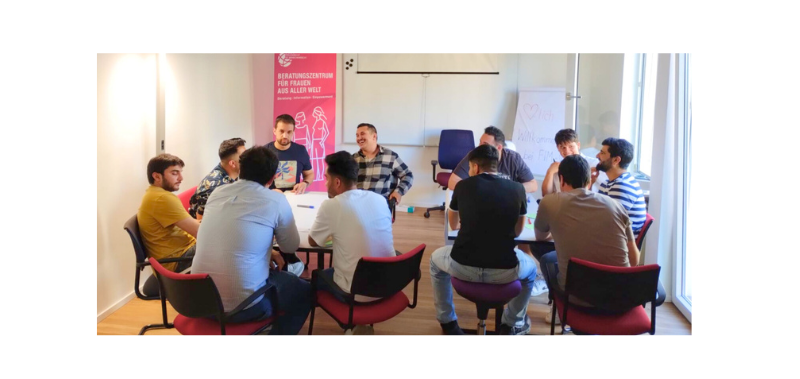 Unsere zertifizierten Multiplikatoren bieten in Zweierteams Workshops für Männer in sozialen Treffpunkten und Geflüchtetenunterkünften an. In interaktiven Rollenspielen und Diskussionen werden die Teilnehmenden zur Auseinandersetzung mit Geschlechtergerechtigkeit, Männlichkeit, Geschlechterrollen, patriarchalen Strukturen und Gewalt im Namen der „Ehre“ angeregt.